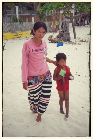 Gegen 14:00 Uhr mussten wir etwas gegen die Lethargie unternehmen und beschlossen ein wenig die Insel zu erkunden. Schließlich wollte ich ja auch noch die mitgebrachten Süßigkeiten und Stofftiere an den Mann bzw an die Kids bringen. Schon eine Strasse hinter dem Bounty Beach zeigte sich das gewohnte Bild das wir nun schon so oft unterwegs gesehen hatten: ärmlichste Behausungen, Wellblechverschläge, Müll - und trotzdem nette, offene und aufgeschlossene Menschen. Einem kleinen verdreckten Jungen mit ordentlich Rotz vor der Nase und nur einem T-Shirt am Körper schenkten wir unser erstes Stofftier, einen kleinen Delphin, sowie etwas Süßkram. Danach drehten wir um und wollten eigentlich weiterlaufen. Allerdings hatten die Geschenke so schnell die Runde gemacht, das etliche Kinder auf uns zustürmten und uns mit leuchtenden Augen anschauten. Gott sei dank hatte ich den Rucksack ordentlich voll gemacht, so dass jeder etwas abbekam. Die Kinder freuten sich sichtlich, was uns wiederum glücklich machte. Eine Win-Win-Situation sozusagen. Wir verteilten dann noch weiter ein paar Kleinigkeiten im Dorf und ging dann noch am Strand etwas spazieren. Auch dort waren lauter spielende Kinder anzutreffen und sobald wir eine Süßigkeit an jemanden verteilten, kamen auch sofort andere Kinder angerannt um noch etwas abzubekommen. Am Ende wurden uns die Sachen regelrecht aus den Händen gerissen.