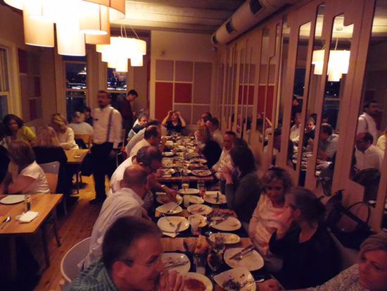 Um 19:00 Uhr war dann Abmarsch zu dem Restaurant direkt am Bosporus. Das Gebäude war so nicht leicht zu finden, da der Eingang nichts davon vermuten ließ, dass sich dort ein Lokal befinden könnte. Mit einem kleinen Aufzug ging es in den 4. Stock und dann wurde uns erst bewusst, welch super Restaurant sich hier versteckt. Der Empfang war auf der Dachterasse und der Ausblick war einfach umwerfend. Als dann die Sonne untergegangen war, wurden wir zwei Stock tiefer zu unseren Tischen gebeten und dann gingen die unzähligen Vor- und Hauptspeisen los. Jeder an den Tischen, haben die Köstlichkeiten genossen, wenn auch die Gewürzthematik der türkischen Küche etwas schärfer war, als es so manchem lieb war.