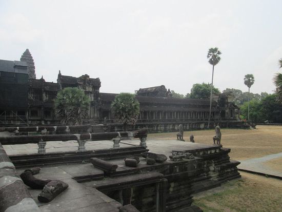 Ich wollte schon immer mal wissen wie genau der Verkehr geregelt wird wenn ein Land mit Linksverkehr mit einem mit Rechtsverkehr angrenzt – einfach gar nicht. Ist wohl dem Fahrer überlassen. Also Visa holen, abstempeln lassen und wieder zurück in den Bus. Danach weiter nach Siem Reap.