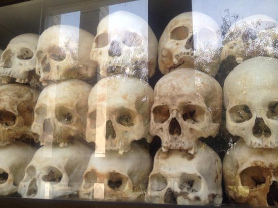 Am nächsten Tag besuchte ich Killingfields und das zugehörige Gefängnis. Ich wollte nicht den überhöhten Fahrpreis die die Tuk Tuk Fahrer verlangen bezahlen, deshalb suchte ich mir einen Einheimischen mit Motorrad der mich für weniger als die Hälfte dort hin fuhr. Diese Fahrt war wirklich Horror. Nach drei Beinahunfällen kam ich endlich an und der Horror ging weiter: