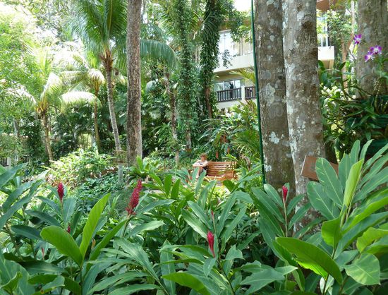 Das Pakasai Resort ist ein ausgezeichnetes GREEN-Hotel mit einer wunderschönen tropischen Anlage den Berg hinauf.Durch die großen Bäume war das Zimmer immer im Schatten und der Ausblick wirkte wie von einem Baumhaus.