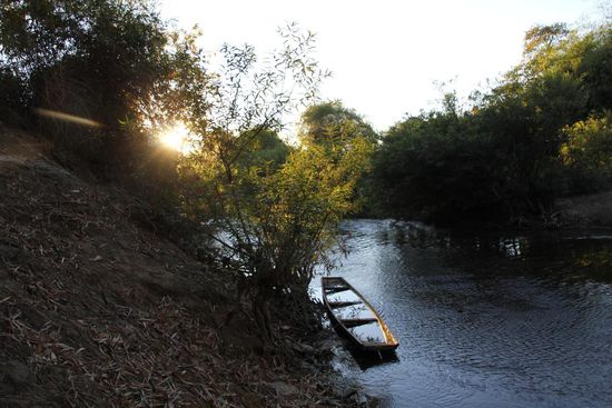 Eine weitere Höhle fanden wir nahe der Buddha-Höhle. Sie lag an einem wunderschönen See und war völlig überflutet, doch im glasklaren Wasser lag ein fahrtüchtiges Boot, mit dem Claudia und Ronja die Höhle ein wenig erkunden konnten. Paddel gab es zwar keine aber dafür einen langen Ast, der als Stechpaddel diente – bis das Wasser fast zu tief dazu wurde und die beiden wieder zur Umkehr zwangen.
