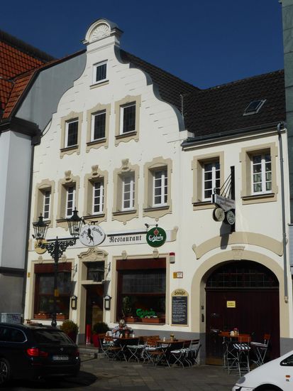 gegenüber liegt ein ebenfalls schönes Giebelhaus, in ihm ist heute ein Restaurant mit Sterneküche untergebracht.