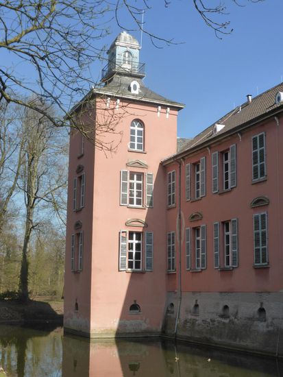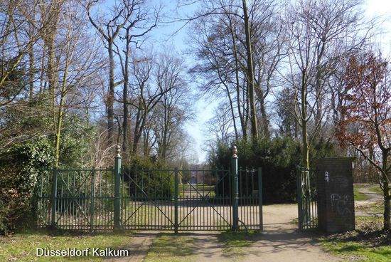 Nur zwei Kilometer ost-nord ostwärts von Kaiserswerth liegt dort, wo der Lauf des im Niederbergischen entspringenden Schwarzbaches durch die Niederterrasse nach Westen noch einmal gegen Norden biegt, ehe er bei Wittlaer in den Rhein mündet, das aus einer Wasserburg hervorgegangene Schloß Kalkum.