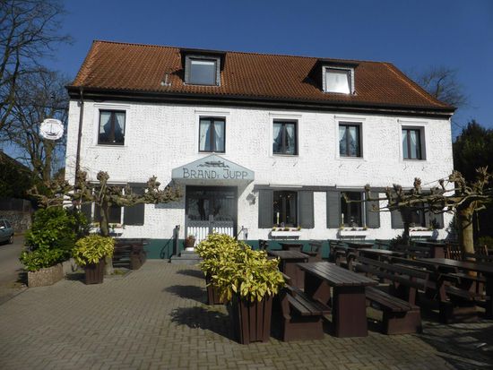 Nach der Besichtigung dieses Stadteils haben wir uns rdlich eine kleine Mittagspause mit einem leckerem Flammkuchen bei Brand's Jupp (am Rheinufer bei Kaiserswerth) verdient.