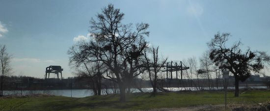 der große Rheinbogen verläuft westlöich und südlich von Himmelgeist - hier sind Dämme angelegt, um die Rheinauen evt. als Hochwasserauffangbecken nutzen zu können.