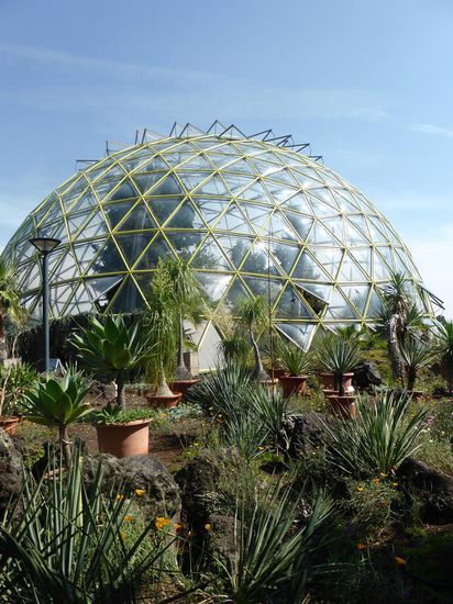 Überwiegend tropische Pflanzen sind unter der Kuppel untergebracht.