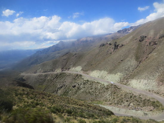 Die Busfahrt nach Cabanaconde ist lang, heiß und unbequem. Der Geruch von Coca Blättern liegt in der Luft, während der Sauerstoff auf der über 3000m hohen Andenstraße immer geringer wird. Doch trotz der Unannehmlichkeiten sind Paul und ich aufgeregt und guter Stimmung. Nicht zuletzt, weil sich zu unserer Rechten eine malerische Landschaft aus Vulkanen, Kakteen, Blumen, Flüssen und Schluchten auftut. Die nachfolgenden Fotos sprechen für sich: