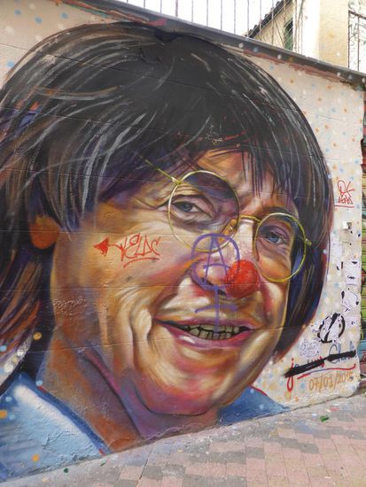 Aber wegen des heutigen Sonntags ist fast nicht los, auf dem Platz ein wenig und in den Seitenstraßen, die voll mit Graffitis sind, gar nichts. Das müssen wir uns morgen anschauen.