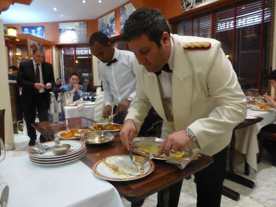Mag die Qualität der Speisen noch stimmen, so ist es der Service, der heutzutage daneben m.E. an Bedeutung gewinnt. Einfachere Lokale machen da in Marseille diesem Lokal etwa vor. Der Dekorationsaufwand ist ebenfalls bei der Einschätzung des Preis-Leistungsverhältnis zu berücksichtigen – und da mangelt es dem chez Michel erheblich. Die Fische werden so nebenbei zerlegt, während man sich mit andern unterhält und gar nicht auf den Teller schaut. So sieht dann auch der präsentierte Teller aus. Na ja wir sind zum 4. Mal da gewesen. Unser heutiger Besuch wird wohl der letzte gewesen sein. Nach einer guten Stunde ist man ‚abgefertigt’ – niemand verabschiedet uns – auch das sind wir in Lokalen dieser Preisklasse anders gewohnt. Nur der Nachtbus klappt pünktlich – den Espresso nehmen wir dann in unserem Appartement.