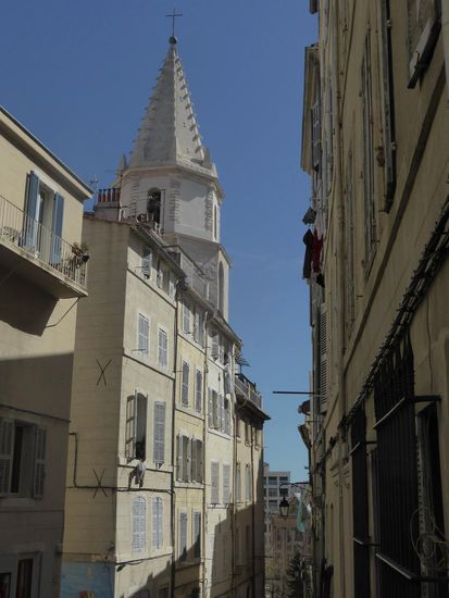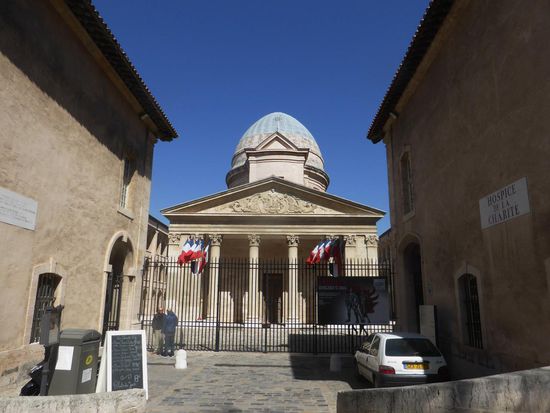 Ein paar Gassen weiter treffen wir auf den von außen unscheinbaren Bau der Vielle Charité. Daneben steht noch ein alter Turm, dessen Bedeutung uns aber verborgen bleibt. Die Stadt Marseille beschloß im Jahre 1640 in diesem Viertel ein Armenhaus zu bauen. Pierre Puget (1620-1694) wurde beauftragt und schuf mit einem seiner schönsten Komplexe (Planung ab 1671) eine geschlossene Einheit, dessen Vollendung er selbst aber 1749 nicht mehr erlebte.