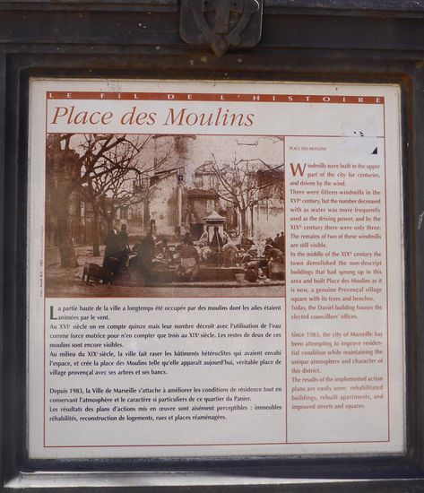 Von den ehemaligen Mühlen ist nichts mehr zu sehen, jedoch säumen einige schöne provenzalische Bürgerhäuser den Platz.