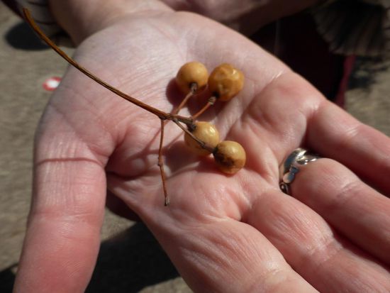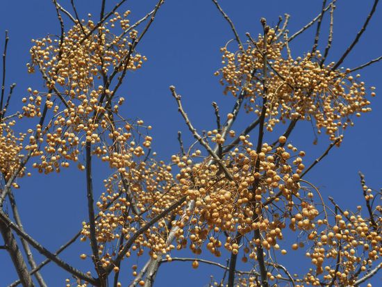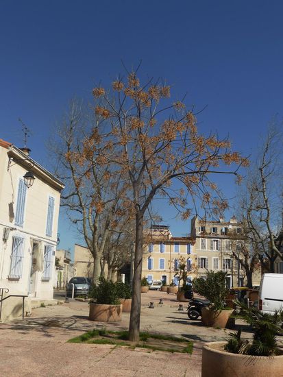 Der Platz ist nett aber nicht überwältigend bis auf einen Baum, der jetzt zwar keine Blätter aber immer noch seine Früchte trägt, eine Frau beantwortet meine Frage mit Micocoulier.