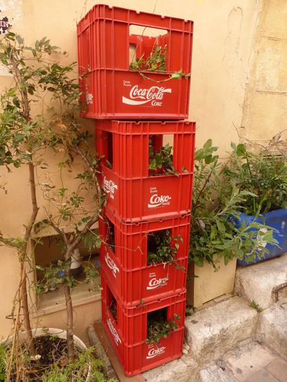 Fantasie scheinen die Bewohner beim Bepflanzen von Gegenständen entwickelt zu haben, wie der bepflanzte Colakastenturm beweist.