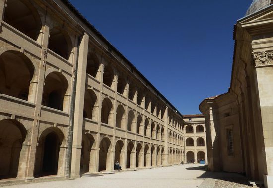 Der Innenhof ist überwältigend. Nichts mehr von der glatten schmucklosen Außenwand, sondern rundherum ein dreistöckiger Arkadengang und in der Mitte des Hofes eine riesige Barock-Kapelle. Nach wechselvoller Nutzung (Armenhaus, Kinder- und Altenheim, Militär) begann der Verfall, der letztlich zum Abriß führen sollte. Aber Le Corbusier setzte sich für den Erhalt ein und sorgte mit dafür, das der Komplex 1951 unter Denkmalschutz gestellt wurde. Seit Abschluß der Restaurierungsmaßnahmen im Jahre 1986 sind drei Museen dort untergebracht.