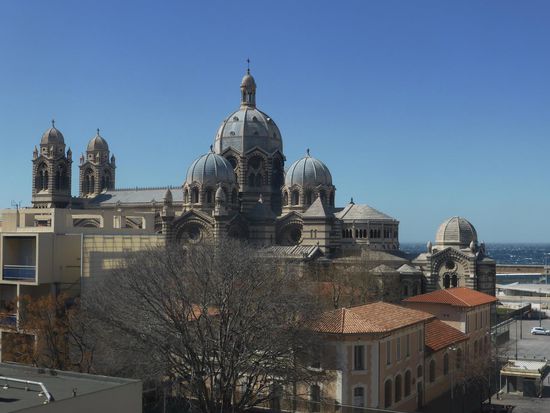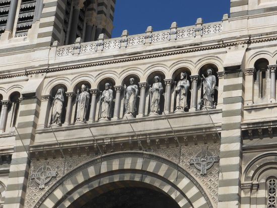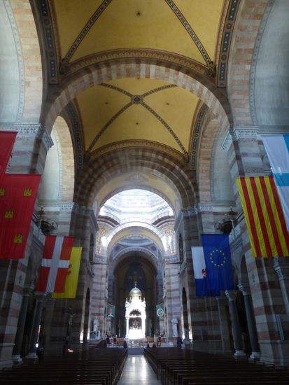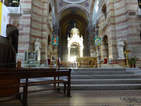 Ein paar Straßen bergab und wir stehen unvermittelt vor der riesigen Cathedrale de la Maior. Nur die Beharrlichkeit des Bischofs Eugène de Mazenod führte trotz der finanziellen Engpässe zur Grundsteinlegung durch Napoléon III am 26. September 1852. .