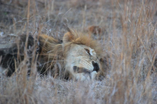 Schlussendlich mussten wir dann aufbrechen, da der Rückweg bis zur besagten Schließzeit bewältigt werden wollte. Und wir waren echt knapp dran. Natürlich kam es wie es kommen musste, wenn die Zeit knapp wird. Ein Löwe am Wegesrand. Seelenruhig schlummert er ca. 3 Meter neben der Straße. Nichts kann ihn stören, weder schreiende Kinder in einem Safari Fahrzeug noch hin und her rangierende Autos. Er liegt einfach nur da und schläft. Schweren Herzens rissen wir uns los - die Schließzeiten!!! Und dann das noch, kurz vor dem Camp, ein Rudel Wildhunde. Krass, gibt es davon doch im gesamten Krugerpark nur etwa 200 Stück. Verdammt, wir hatten jetzt eigentlich gar keine Zeit mehr. Mit uns rangen noch bestimmt 10 weitere Fahrzeuge mit sich, den Wildhunden und den Schließzeiten. Wir entschieden uns, wenn auch wiederwillig, artig zu sein und um Punkt 18:30 rollten wir durch das Gate.