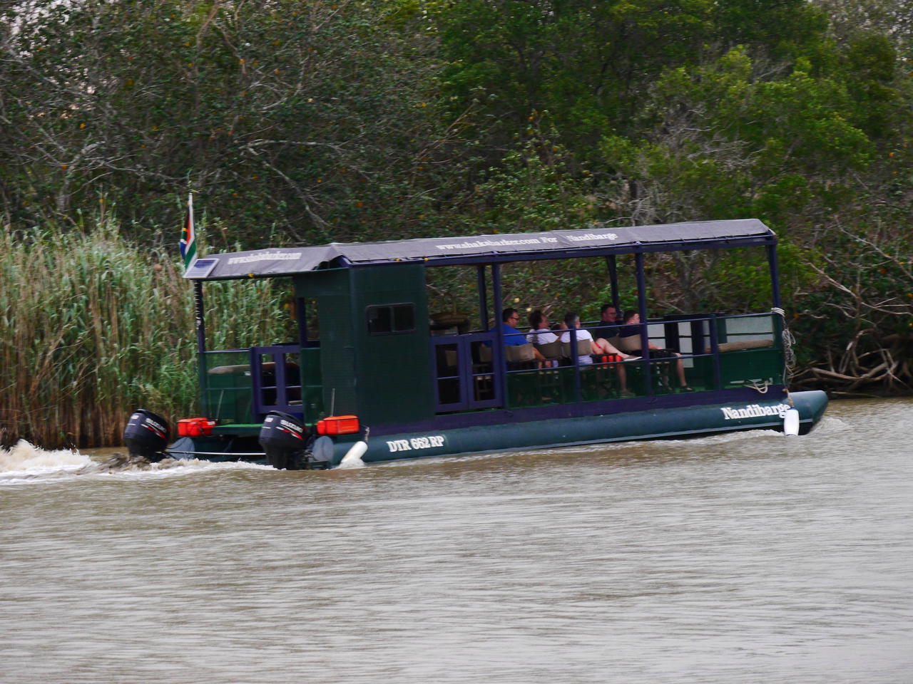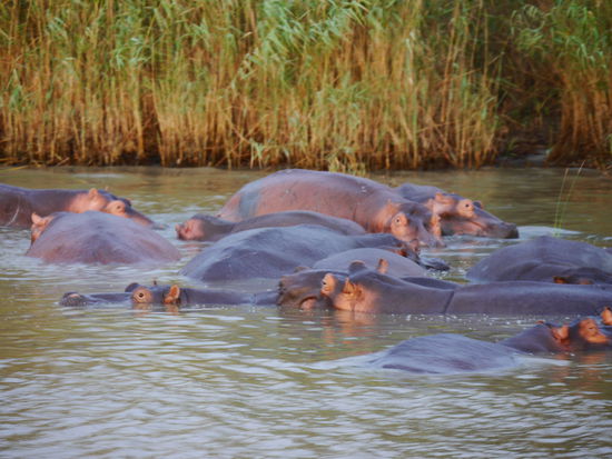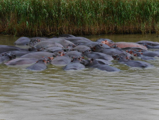 Natürlich regnete es pünktlich zur Abfahrt. Nichts desto trotz, war die Fahrt toll. Riesige Hippo's Familien schliefen friedlich im Wasser stehend, so fest, dass unser Bötchen sie gar nicht aus der Ruhe bringen konnte. Auch viele, viele Wasservögel gab es am Ufer zu bewundern. Außer den Hippo's ist die zweite Kontraindikation im See baden zu wollen, eine beachtliche Anzahl von Krokodilen. Gefährliches Südafrika!!