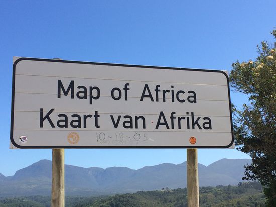Bei der Gelegenheit machten wir noch einen kurzen Zug durch die Gemeinde und schauten uns den "Ortskern" von Wilderness an. Länger als 10 Minuten sind dafür nicht erforderlich. Klein aber fein! Bei unserem kurzen Rundgang sprang mir der Wegweiser zur"Map of Africa" ins Auge und ich erinnerte mich geistesgegenwärtig daran, irgendwo schonmal gelesen zu haben, dass dieser Punkt sehenswert sei. Also Planänderung. Erstmal zur Map of Africa, statt nach Hause, um Grillfleisch in den Kühlschrank zu packen. Da wir ja gleich weiter wollten, hatten wir die Kühltasche schon im Kofferraum, wie praktisch.