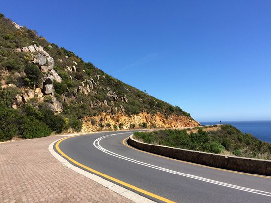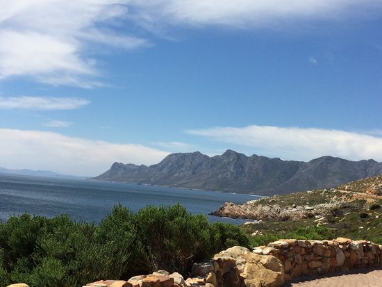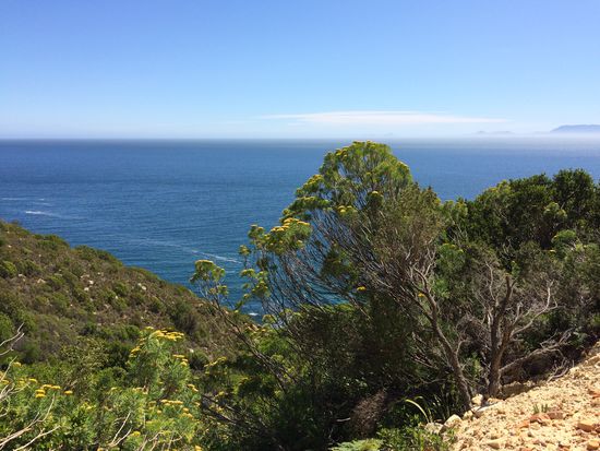 Nachdem wir wieder länger da waren als alle anderen, reißen wir uns doch los. Wir fahren weiter auf der Küstenstraße R44 und kommen hinter Rooi Els auf den Clarence Drive. Dieser kurvige Abschnitt der R44 zählt zu den schönsten Küstenstraßen Südafrikas, wenn nicht weltweit. Ca. 10 Kilometer schlängelt er sich zwischen Meer und Bergen dahin. Bei klarem Wetter sieht man über die False Bay hinweg die ganze Kaphalbinsel bis zum Kap der Guten Hoffnung. Ein Traumpanorama. Wir halten in fast jeder Parkbucht und genießen die Aussicht. In Gordon's Bay wenden wir und fahren den Drive zurück. Kurz vor Rooi Els fällt eine schöne Lagune auf. Und weil das Meer heute so ruhig ist und so schön Türkis funkelt, wird der Wunsch baden zu gehen bei meinem Driver übermächtig. Also rechts raus und ab zum Strand. Der Strand ist klein und niedlich und das Meer tatsächlich ruhig. Keine meterhohe Brandung mit einer Unterströmung die einem die Füße weg reißt. Doch es gibt einen Haken. Befinden wir und doch inzwischen am Atlantik. Der mit dem kalten Agulhas Strom, direkt aus der Antarktis. Ein Wunder, das keine Eisschollen vorüber treiben. Kurzum, das Wasser ist a....kalt.