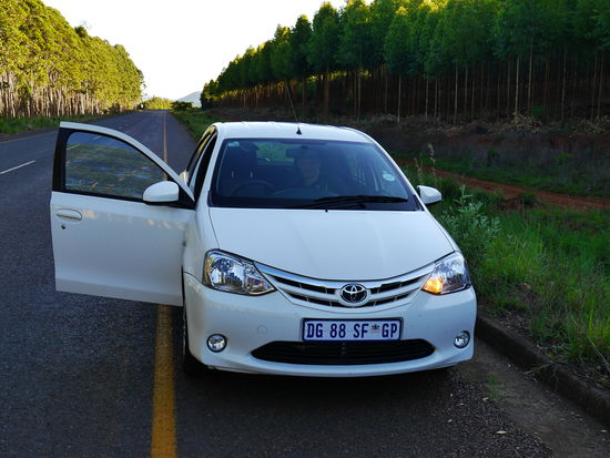 Die Fluggesellschaft unserer Wahl hieß dieses Jahr Swisscom. Sie bestach zwar nicht mit Design- und Serviceexplosionen, dafür waren die Eidgenossen überaus pünktlich und sehr freundlich. Überhaupt verliefen die Flüge viel besser als befürchtet. Relativ ausgeruht, mit ein paar Stündchen Schlaf auf der Habenseite erreichten wir Johannesburg. Die Einreiseformalitäten, wenn man es überhaupt so nennen kann, verliefen völlig unkompliziert und waren in 10 Minuten erledigt. Auch ein ATM war schnell gefunden und ein ganzes Rudel wilder Tiere wanderte in unsere Geldbörse. Aber weil wilde Tiere halt wild sind, blieben sie dort nicht lange. Wär hätte es gedacht? Nun noch schnell in den Vodacom Shop und eine Prepaid Karte für' Handy besorgt. Auch das ging super zügig und wir waren kurz davor einen neuen Zeitrekord auf zu stellen. Jetzt bräuchten wir nur noch unseren fahrbaren Untersatz. Also auf zu Ferienautos Hertz. Die machten dann mit übertrieben viel bürokratischem Aufwand unseren Rekordversuch mit einem Handstreich und etwa 10 verschiedenen Papieren mit einem Schlag zu nichte. Im Parkhaus auf Platz A7, sollte unser Toyota Etios auf uns warten, natürlich in Südafrikaweiß. Aber auf Platz A7 klaffte nur eine Lücke. Mist, wir hatten so einen Lauf. Also den Mitarbeiter über das nicht vorhanden sein des Autos informiert und abgewartet. Von irgendwo her, aus den Tiefen des riesigen Parkhauses zauberte er dann tatsächlich unser Auto hervor. Easy eben.... Zu den schon dokumentierten Kratzern kamen noch ein paar neue hinzu und schon konnten wir starten.