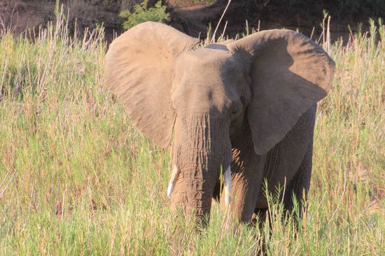Gesehen haben wir Elefanten, Giraffen, Warzenschweine, unzählige Antilopen, ein Krokodil und Nilpferde. Für den ersten Tag und das nicht geschulte Auge, gar nicht schlecht. allerdings extrem ermüdend. Es war sooo heiß (die AC schaffe es nicht einmal, das Auto vernünftig zu kühlen, lag wahrscheinlich am klitzekleinen Motor) und die Tiere sind soooo gut getarnt. Verdammt!