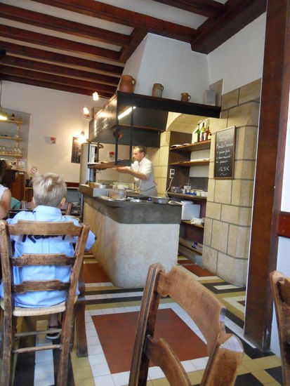 Abends gehen wir zur Creperie, wo Wolfgang als Vorspeise sechs Austern (die ersten in seinem Leben) bestellt und ich einen Salat mit Ziegenkäse. Dann gibt es für jeden ein Galette, das direkt im Gastraum zubereitet wird – sehr lecker. Dazu natürlich einen Cidre, ganz stilecht aus der Bolée.