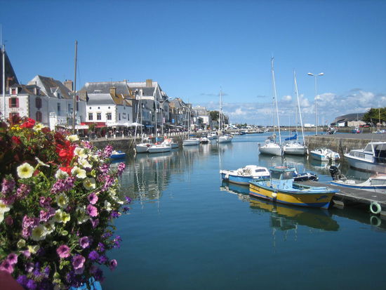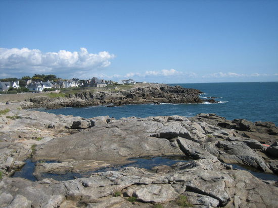 Wir machen heute einen Ausflug nach Pouliguen. Wieder fahren wir an der Küste entlang, die hier auch Cote Sauvage genannt wird. Dort kann man kilometerweit auf dem „Sentier des Douaniers“ wandern. Herrlicher Sonnenschein bei frischen 20 Grad – die Buchten sind trotzdem belebt.