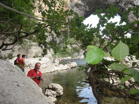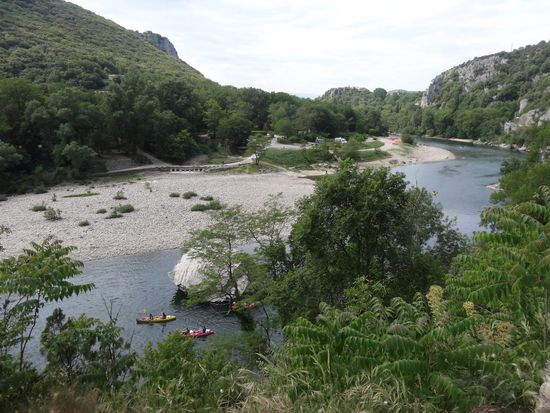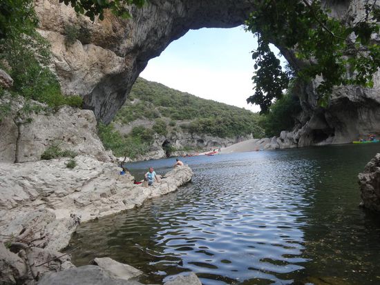 Vallon-Pont-d’Arc liegt im Tal der Ardèche, am Ortsrand mündet die Ibie in die Ardèche. In Vallon beginnen die 30 km langen, spektakulären Gorges de l’Ardèche mit dem 60 Meter hohen Natursteinbogen Pont d’Arc, der für den Ortsnamen als Zusatz gewählt wurde.
