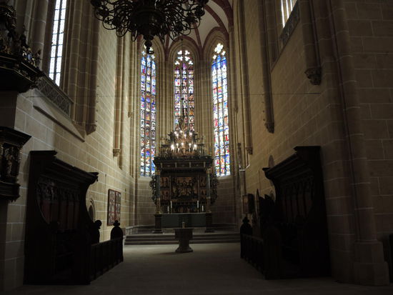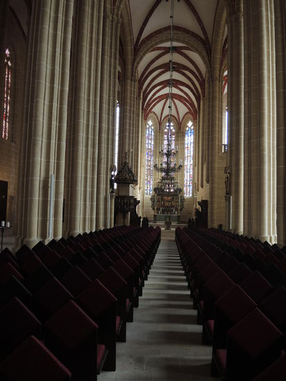 Ziel ist Mühlhausen, die "steinerne Chronik Thüringens", wie im Reiseführer nachzulesen ist. Mehr als 400 Häuser stehen hier unter Denkmalschutz. Berühmter Sohn der Stadt ist Thomas Müntzer, Reformator und Führer des Bauernkrieges 1524/25. Ein auf den ersten Blick wirklich zauberhaftes Städtchen und wir schauen uns zuerst die Marienkirche an. Sie ist nach dem Erfurter Dom die zweitgrößte Hallenkirche Thüringens und heute Müntzergedenkstätte.