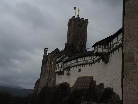 In der Nacht kommen Regen und Sturm von quer. Zum Glück liegen wir in unserem Wohnwagen warm und im Trockenen. Zeit also für einen kulturellen Ausflug an Palmsonntag. Nach einem durch die Zeitumstellung etwas verspäteten Frühstück machen wir uns auf den Weg nach Eisenach zur Wartburg.
