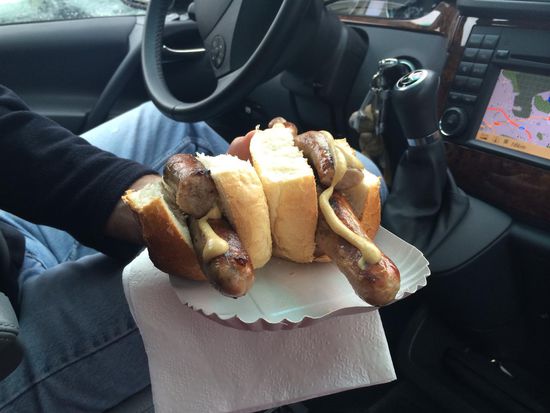 Am späten Nachmittag machen wir uns schließlich auf den Heimweg und legen noch einen Stopp an einer Imbissbude mit echter, thüringer Rostbratwurst ein. Für den Fall, dass wir heute abend nix mehr zu essen bekommen sollten......