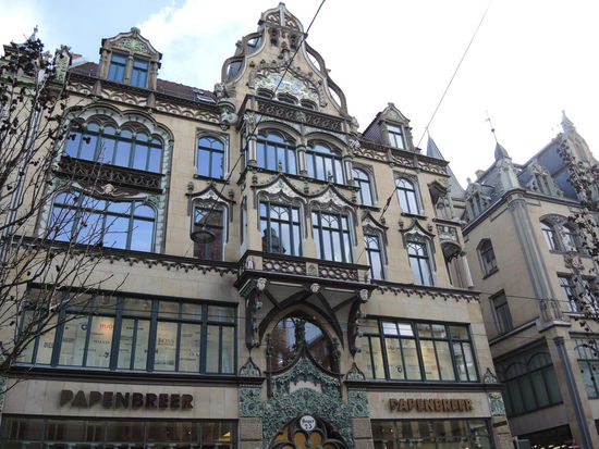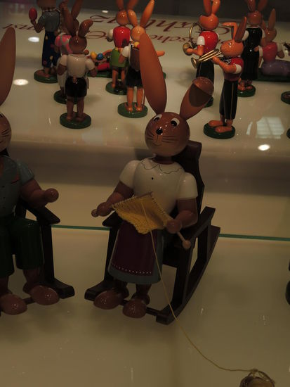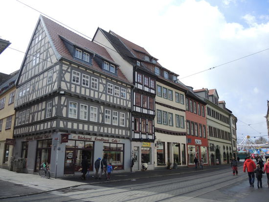 Über den Anger und die Fußgängerzone erkunden wir die wunderschöne Altstadt Erfurts. Ein erster Graupelschauer und Vorboten des Orkans Niklas treiben uns in einen Einkaufstempel direkt am Anger 1. Hier kaufen wir zwar nichts ein, können aber schöne kunsthandwerkliche Stände mit Osterschmuck aus dem Erzgebirge bewundern.