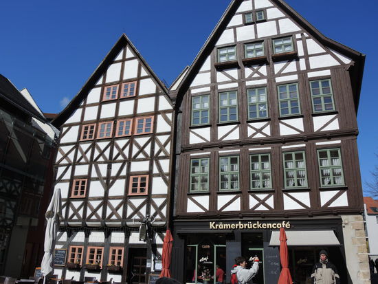 Das usselige Aprilwetter begleitet uns durch den ganzen Tag. Sonne, Wind, Regen, Schnee - alles ist dabei, aber toll ist es hier trotzdem. Eine zauberhafte Stadt, schöne Plätze und Kneipen, Idylle rund um die Krämerbrücke und Trubel in den Fußgängerzonen. Alles überragt von dem imposanten Domberg. Ich denke, Erfurt ist eine Stadt mit hoher Lebensqualität.