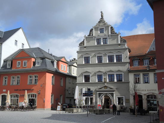 Ein Rundgang durch die wunderschöne Stadt bei kaltem Wind bringt uns vorbei an Goethes und Schillers Wohnhäusern, am Nationaltheater, an einem Wurst-Imbiss und in eine wunderschöne Boutique, wo ich ganz zufällig einen schicken Mantel erstehe