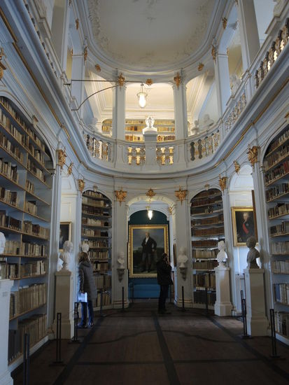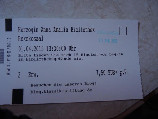 Die Anna-Amalia-Bibliothek ist schließlich der Höhepunkt des Tages. Im Reiseführer steht zu lesen, dass Eintrittskarten für Einzelpersonen besser lange Zeit im Voraus zu buchen sind. Umso mehr freuen wir uns natürlich, spontan eine Karte zu ergattern.