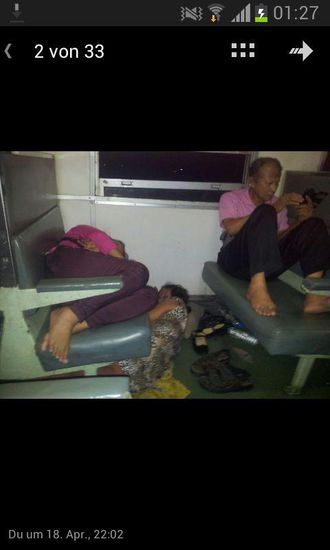 Einige waren richtig interessiert an mir und fragten so einiges. Aber vorallem wollten sie wissen warum ein Ausländer mit der 3. Klasse fährt. Alle anderen würden die bequeme 2. Klasse nehmen.... Ich antwortete: ich will auf Reisen das normale Leben erleben - das Leben,was die normalen Menschen leben. ..