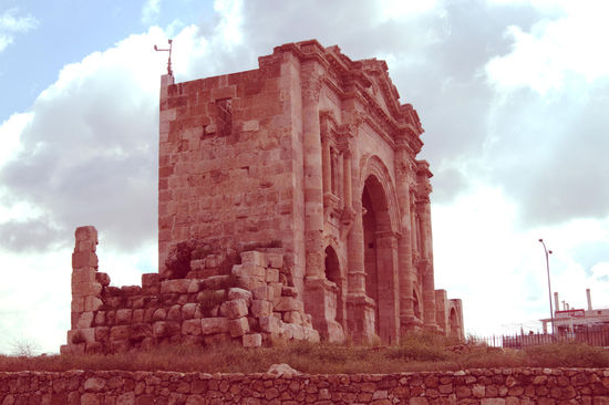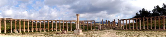 Während des Frühstückes regnet es teilweise stärker, während der Fahrt nach Gerasa bestätigt sich aber mein Optimismus: es wird sonnig, unterbrochen von nur wenig Regen. Gerasa ist trotz zweier größerer Erdbeben die vermutlich besterhaltenste römische Stadt dieser Größe. Während die erfahrenen Gruppenreisenden enttäuscht sind, daß sie während der Fahrten nicht mehr Infos vom Guide erhalten, finde ich Osamas Wissen aus verschiedenen Gebieten gut, zumal er ja sehr unterschiedliche Touren macht.