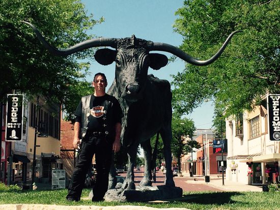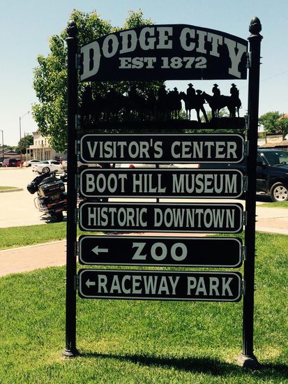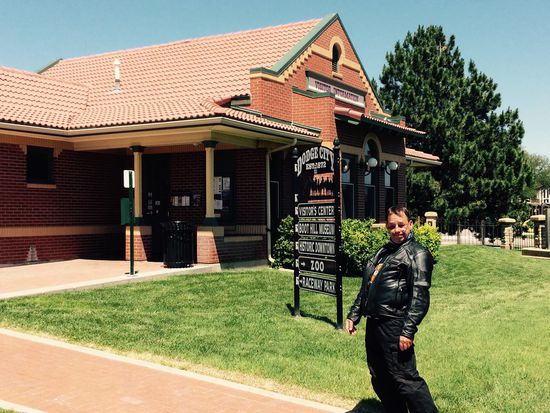 Die andere Seite von Wichita ist gar nicht schön. Irgendwann kommt dann doch die Sonne raus und es wir immer wärmer, zum Glück. Jetzt gefällt mir das fahren wieder besser. Was nicht ganz so toll ist, das Land ist flach wie ein Blatt Papier, hier kann man am Montag schon sehen wer am Sonntag zum Tee kommt. Endlose Weite. Es ist faszinierend aber auch irgendwann sehr eintönig. Hier und da ein paar Kühe oder Pferde, vereinzelt mal ein Haus oder eine Ranch, ansonsten viel, viel flaches Land und schnurgerade Strassen. Ein Diner erfreut uns mit gutem Essen, wir sehen eine Gegend mit hunderten von Windrädern. Dann endlich DODGE CITY. Jetzt gibt es sicher Abwechslung. Weit gefehlt. Es gibt ein Museum, ein paar alte Häuser und alles ist wie ausgestorben. Hallo, es ist Samstag, wo sind all die Menschen?