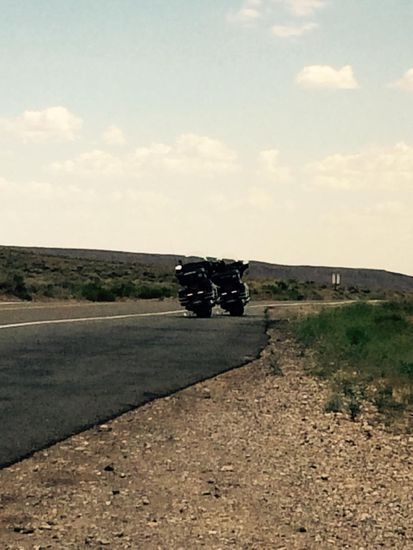 Vorbei an Sand Dünen, endloser Einöde und vertrockneten Büschen. Aber trotz allem faszinierend und doch irgendwie schön. Auf einmal das Schild, lockerer Kies. Diesmal aber richtig viel und darunter ein welliger Belag. Na Bravo! Ich schau nach vorne und sehe die Strasse im unendlichen verschwinden. Bitte, bitte nicht die ganze Strecke so! Nach gut 2 Meilen dann wieder normale Strasse. Nach unsrem off Road Abenteuer war das ja ein Klacks!!!