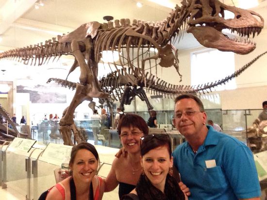 Noch schnell einen Hot Dog vor dem Museum und dann rein. Der City Pass ist ja nicht schlecht, aber für die Tickets müssen wir doch wieder in eine Schlange zum anstehen. So bleibt nur Zeit für die Elefanten, Dinosaurier und die Meeressäuger, dann müssen wir wieder weiter. hier könnte man geschlagen 2 Tage drin bleiben, bis man das wichtigste gesehen hat. Wir entschliessen uns die Uptown Tour zu fahren, die hält ja vor unserem Hotel. Alle ausser mir sind alle völlig entspannt, ich denke immer nur Tik Tak Tik Tak. Wir sind auch bereits etwas in Verzug, aber wir hoffen noch. New York = viel Verkehr und Stau. Wir schleichen am Guggenheim vorbei. Es ist eigentlich gar nicht mehr so weit und doch zu weit um zu laufen. Als wir endlich vor dem Hotel anhalten ist allen klar: rauf, umziehen, stylen wer das will aber nur schnell, runter, Taxi und ab zum Theater. Leute, ihr glaub nicht wie hektisch das zu und her geht, zu viert in einem Zimmer wo alle rum rennen, wie im Irrenhaus.