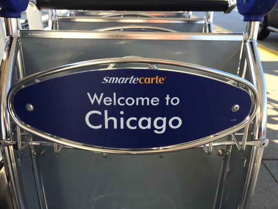 In Chicago müssen wir uns erst mal den Weg durch die Serviceoase suchen. Nichts angeschrieben. Rider verspürt den Drang zu rauchen und schreitet mutig voran. Als ich einen Sicherheitsmann frage wo wir hin müssen, sagt er nicht hier raus sondern wieder nach oben. Da Rider bereits 2 Schritte von der "Sicherheitslinie" (ein gelber Strich am Boden) entfernt ist, darf er nicht zurück. Draussen ist draussen!!!