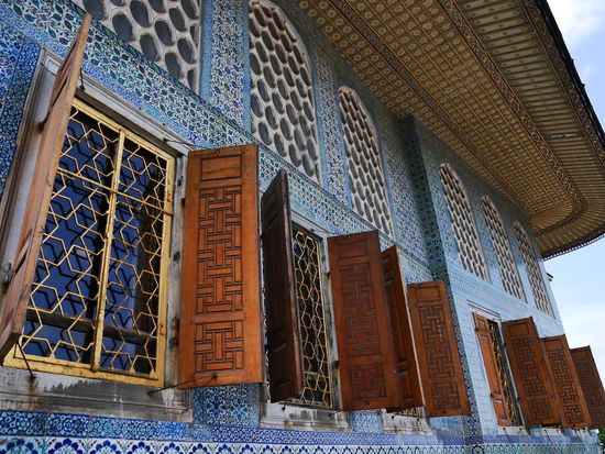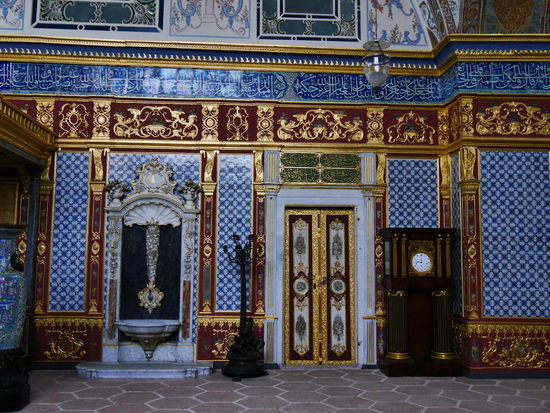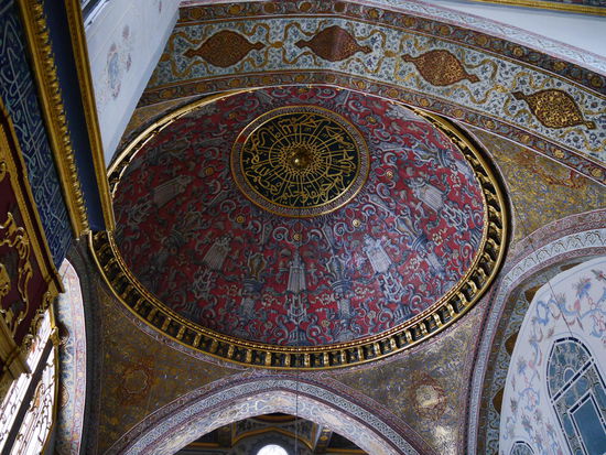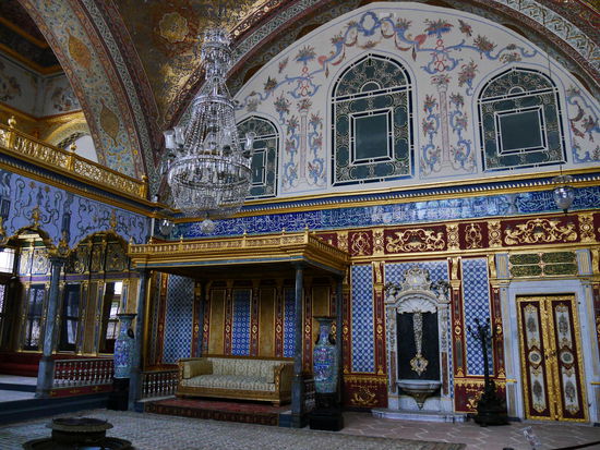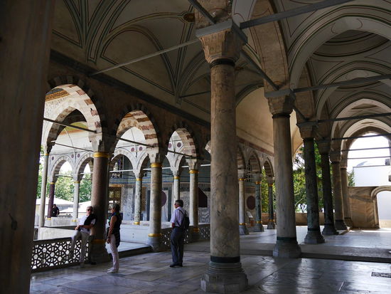 Doch zurück zum Programm. Dem Topkapi Palast. Mit dem Bau wurde bald nach der Eroberung Konstantinopels(1453) durch Sultan Mehmed II. begonnen. Der konnte sich nicht so richtig entscheiden, wo sein Palast denn nun stehen sollte. Schließlich entschied er sich dann für die Landspitze zwischen Goldenem Horn und Marmarameer. Mann kann durchaus schlechter wohnen.