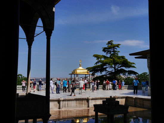 Den Topkapi Palast wollten wir heute als Erstes in Angriff nehmen. Weitläufiges Gelände und viele Gebäude ergibt: lange Besichtigungszeit. Istanbul zeigt uns sein schönes Gesicht. Die Sonne strahlte vom blauen Himmel und die Temperaturen lagen bei angenehmen 23°C. In Berlin schwitzte man derweil bei 30°C.
