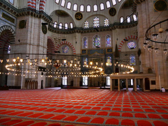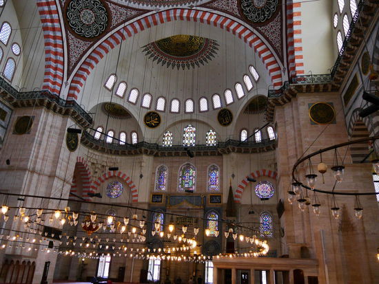 Also ließ Sinan für das Riesengewicht dieser Moschee ein mit Pfählen stabilisiertes Fundament aus einem besonders dafür geeigneten Zement legen, den er sehr langsam abtrocknen ließ. Erst nachdem das Fundament sich sachte gesetzt, die erstrebte Festigkeit erreicht hatte und seine Erdbebenwellen puffernde Wirkung entfalten konnte, ließ er die Hochbauten errichten.Die Rechnung scheint auf zu gehen. Auch hunderte Jahre und etliche Erdbeben später steht sie immer noch.