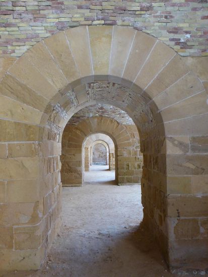 Die unter Friedrich II. 1232-1240 erweiterte Anlage ist riesig. Das Innere wird restauriert – daher ist der einzige riesig große Innenraum (dreischiffige Halle mit Kreuzgratgewölbe) nicht zu besichtigen.
