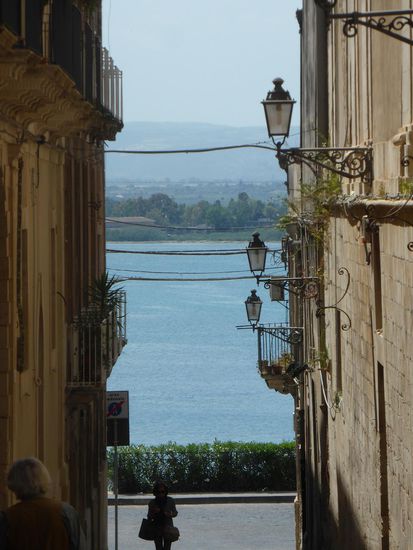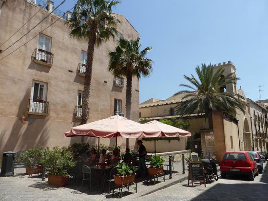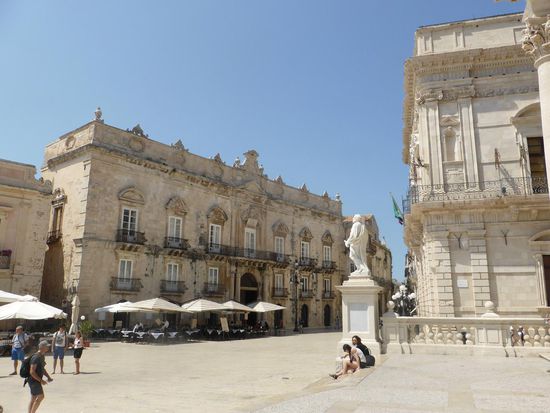 Wir bestellen um 11.30 Uhr ein Taxi, das uns 20 min später abholt (Großraumlimousine- VIP-Service). Kurz nach Noon sind wir dann in Syrakus und zwar in Ortigia (dem Altstadtbereich). Wir bestellen den Fahrer für 17.30 Uhr an die gleiche Stelle und legen los.