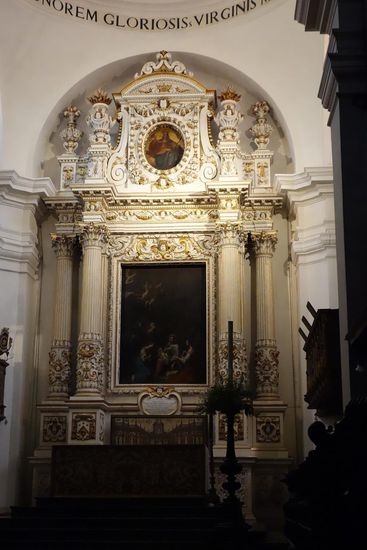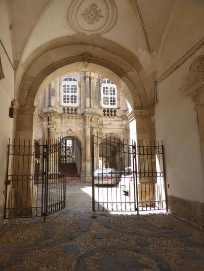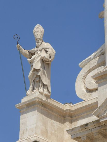 Die heutige geschwungene, durch doppelte Säulenstellungen gegliederte Barockfassade stammt aus den Jahren 1728-54, nachdem zwei Erdbeben 1542 und 1693 schwerste Verwüstungen angerichtet hatten, die umfassende Restaurierungsarbeiten erforderlich machten.