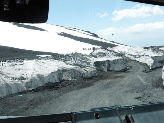 Von dort kann man mit einer Kabinenseilbahn auf fast 2900 m Höhe fahren. Preis 30€ Man ist zwar schon an der Schneegrenze, aber es geht noch weiter (wenn man will) Preis 32 € incl. 9. € für einen Guide.
