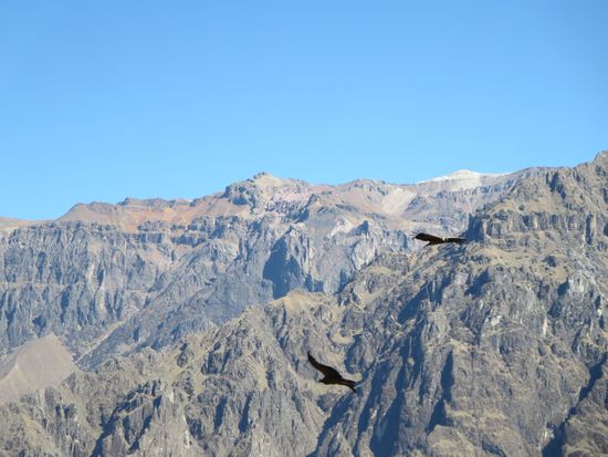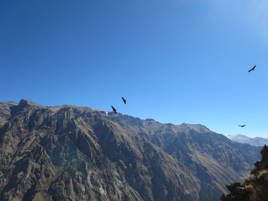 Auf einem kleinen Felsvorsprung tummeln sich bereits hunderte Touristen und warten auf die Vögel. Anscheinend war es in den letzten Tagen eher selten möglich, die Tiere zu sehen, daher haben wir ausnahmsweise mal Glück und beobachten mehrere Minuten das Schauspiel dieser riesigen Tiere, die eine Flügelspannweite bis zu drei Metern erreichen.
